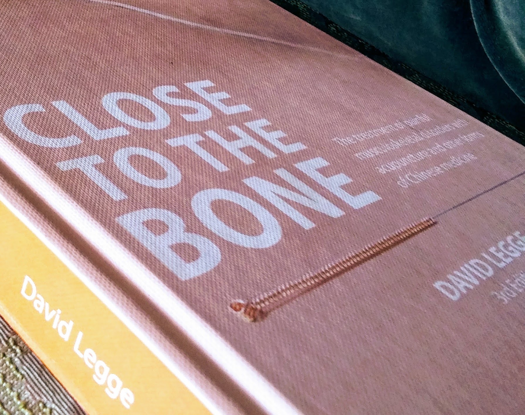 Description of slide show images: (1). Front cover of book (Tom Bisio’s A Pearl From The Dragon’s Neck); (2). Front cover of book (David Legge’s Close To The Bone); (3). View of the spines of these books.