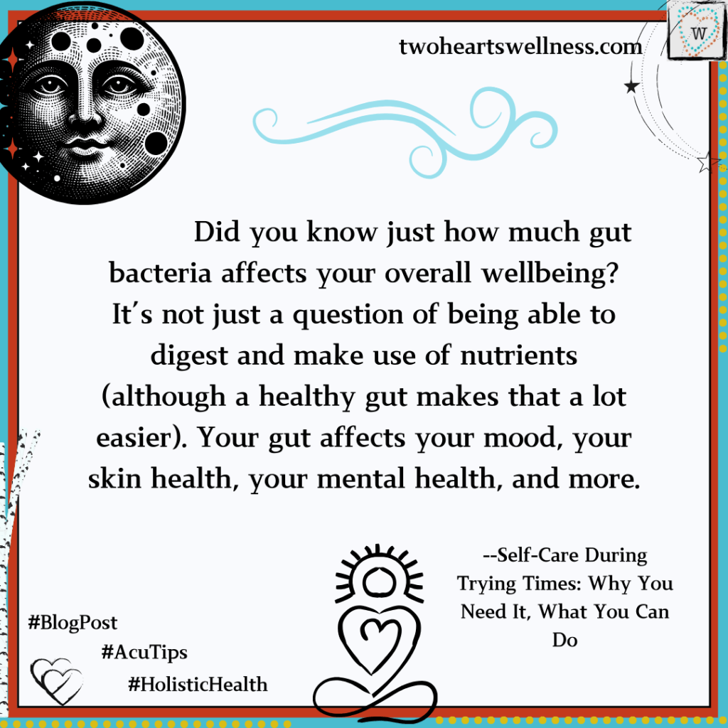 I cannot emphasize strongly enough the value of a healthy gut microbiome. If you do nothing else, work on your innards. Did you know just how much gut bacteria affects your overall wellbeing? It’s not just a question of being able to digest and make use of nutrients (although a healthy gut makes that a lot easier). Your gut affects your mood, your skin health, your mental health, and more.