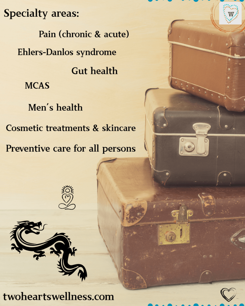 Dr. Bruno’s specialties as a Chinese medicine practitioner include: • Musculoskeletal health (acute or chronic pain relief; Ehlers Danlos syndrome & hypermobility support) • Digestive support, gut health, and weight loss • Aesthetic treatment, including scar revision • Men’s health • General preventative care and wellness support for all persons.