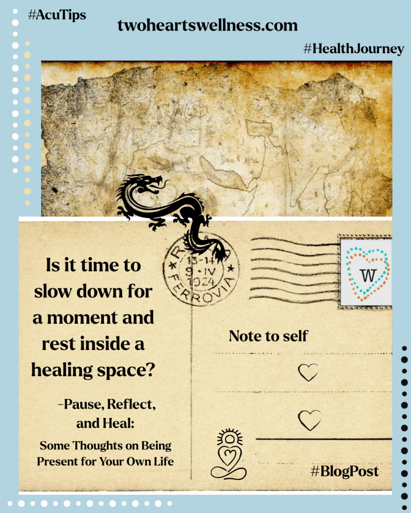 One reason for learning to pause relates to our need for homeostasis (in other words: not too much and not too little, or–as we advocate in Chinese medicine–to achieve balance). Being present, being able to identify one’s emotions and tend to them, and being able to sit with and hold space for one’s process is healing. You don’t have to be a yoga practitioner or a Taoist monk to agree that calming your nervous system and giving your vagus nerve an opportunity to do its job is a healing action, for example. (The vagus nerve is the longest nerve in your body and it supports your ability to rest and digest).