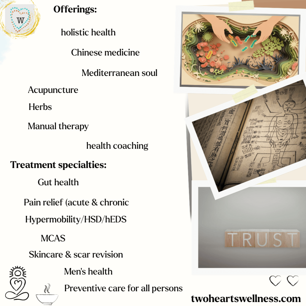 When the digestive issue is a metaphor and there is that ah-ha moment, it’s magical. If it’s not there, that’s fine and the elusive root cause will be found elsewhere. But if it resonates, it resonates. It’s not the dismissive or gaslighting approach that only accepts lab results and discounts gut feelings or deeply-felt healing journeys. It’s Chinese medicine (with a twist of Mediterranean soul, as I do bring my own cultural background to the treatment) and an opportunity to bring healing via the gut as metaphor.